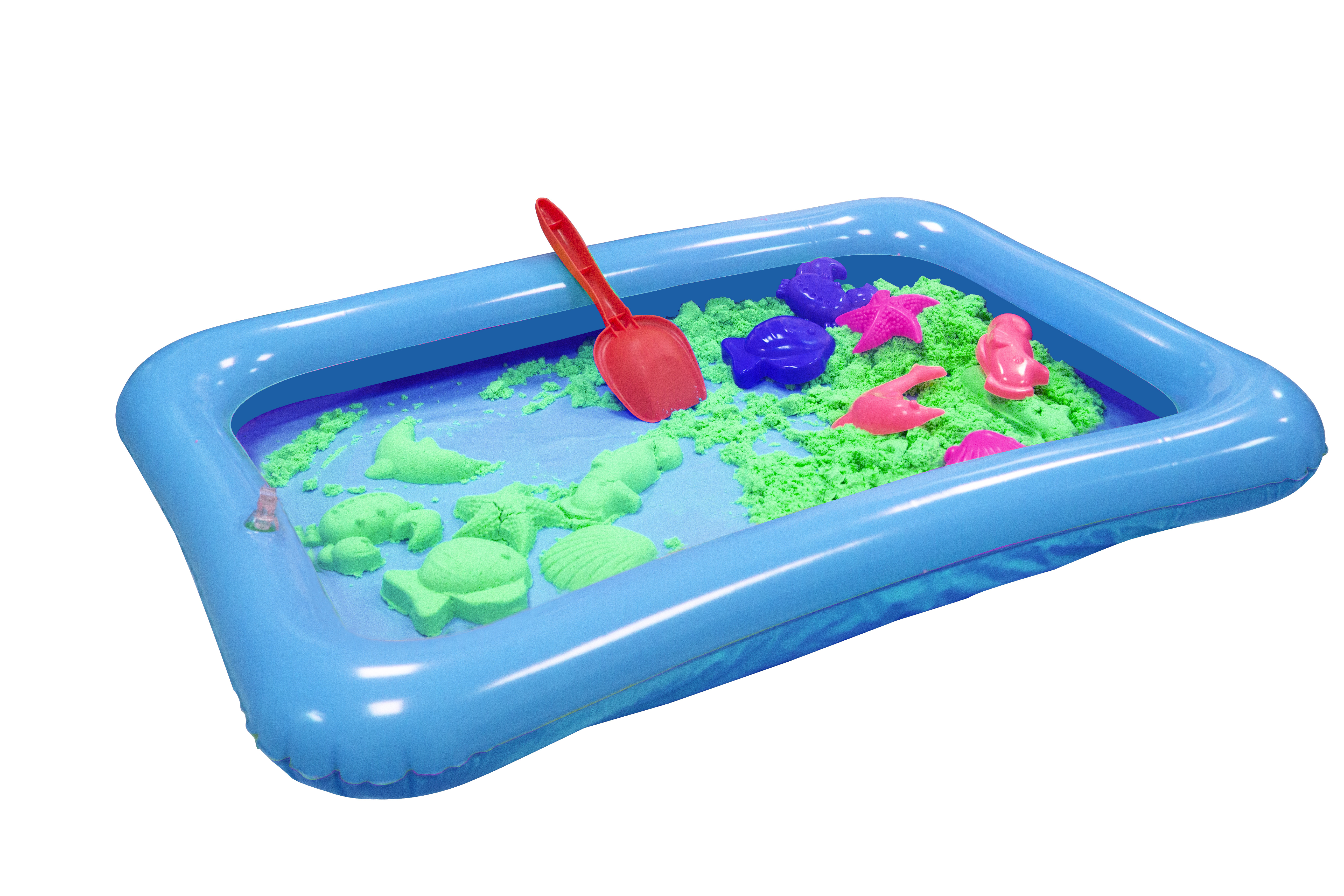• Balení obsahuje nafukovací pískoviště, 12 formiček, box, pumpičku a písek