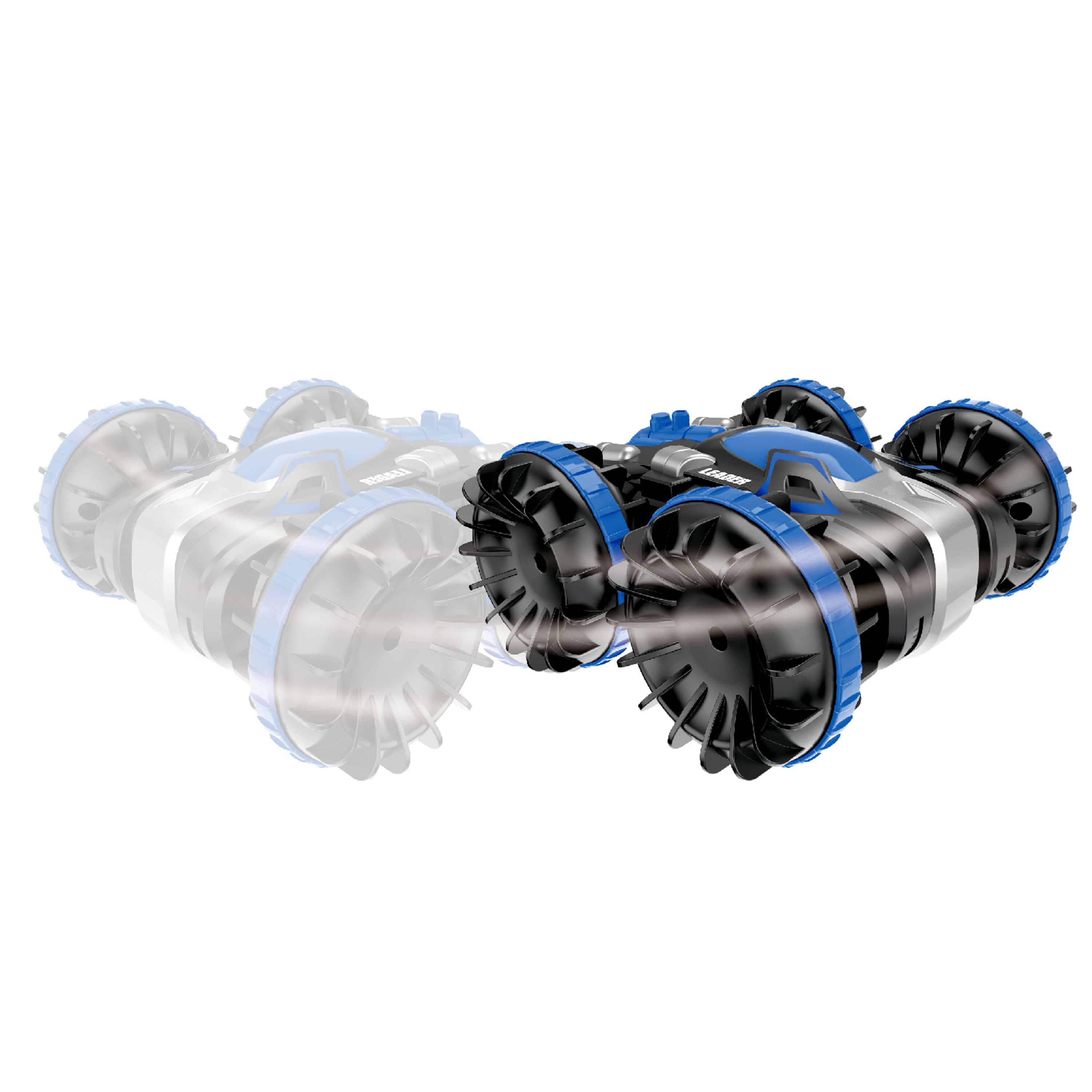 Auto na dálkové ovládání, které jezdí nejen po zemi, ale i po vodě. Pneumatiky se speciálním vzorem zajišťují skvělou přilnavost v terénu a dobrou ovladatelnost při jízdě ve vodě.