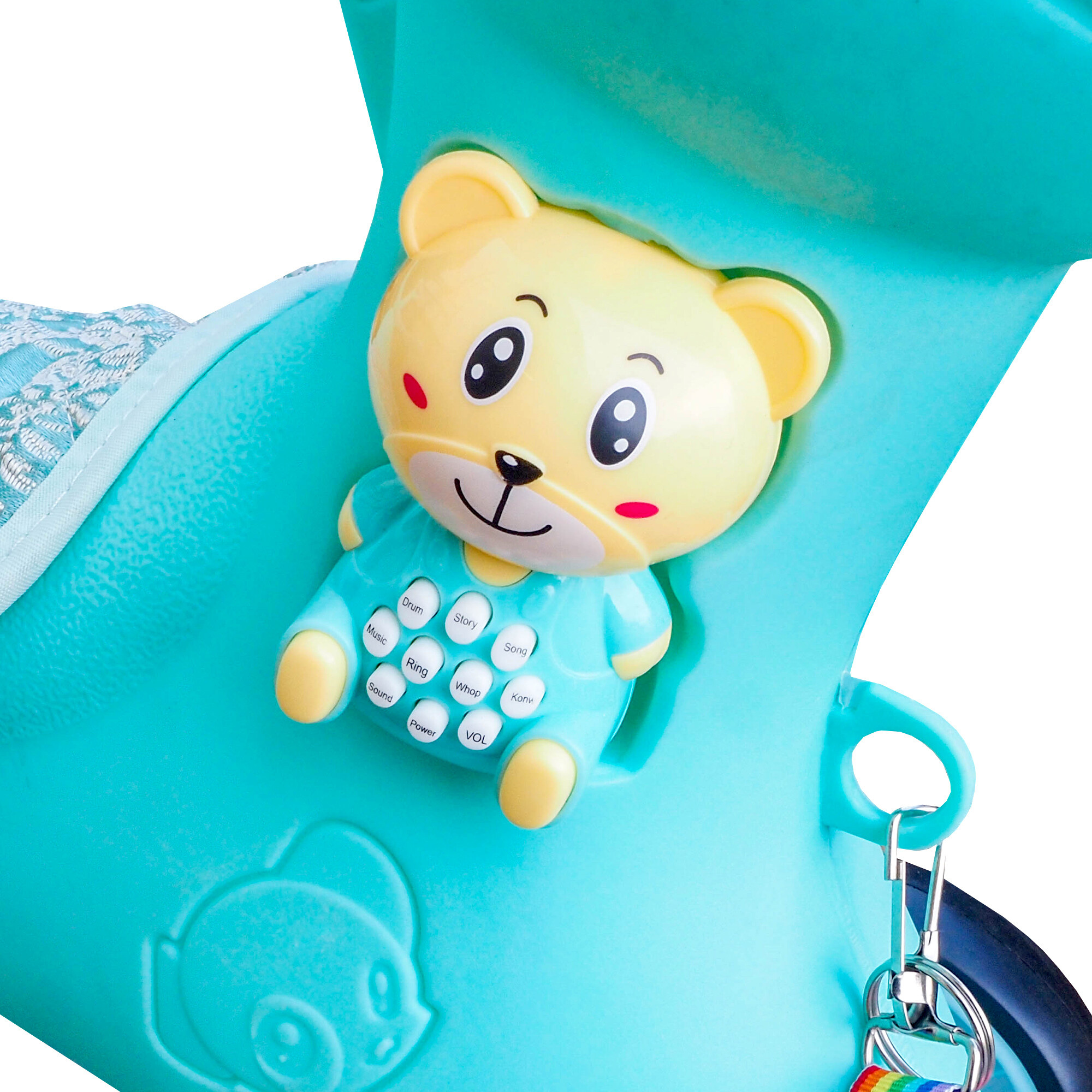 Na krku koníka se nachází interaktivní medvídek, který vydává různé zvuky a melodie. Tato hračka nejenže zaujme pozornost vašeho dítěte, ale také stimuluje jeho sluchové vnímání a podporuje rozvoj hudebního cítění.