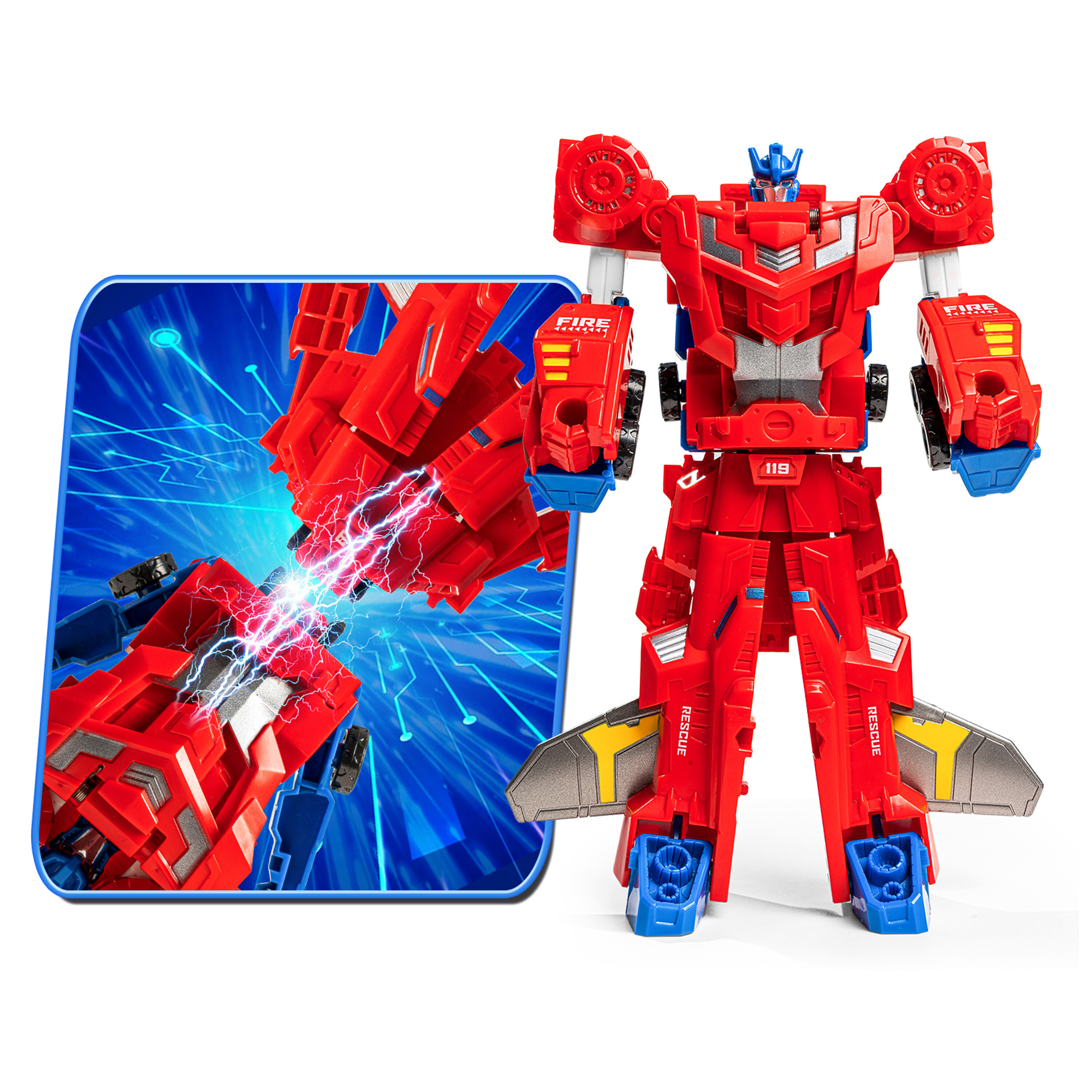 Robot, který se transformuje na 2 hasičské vozidla, je snem každého malého fanouška autíček a robotů.