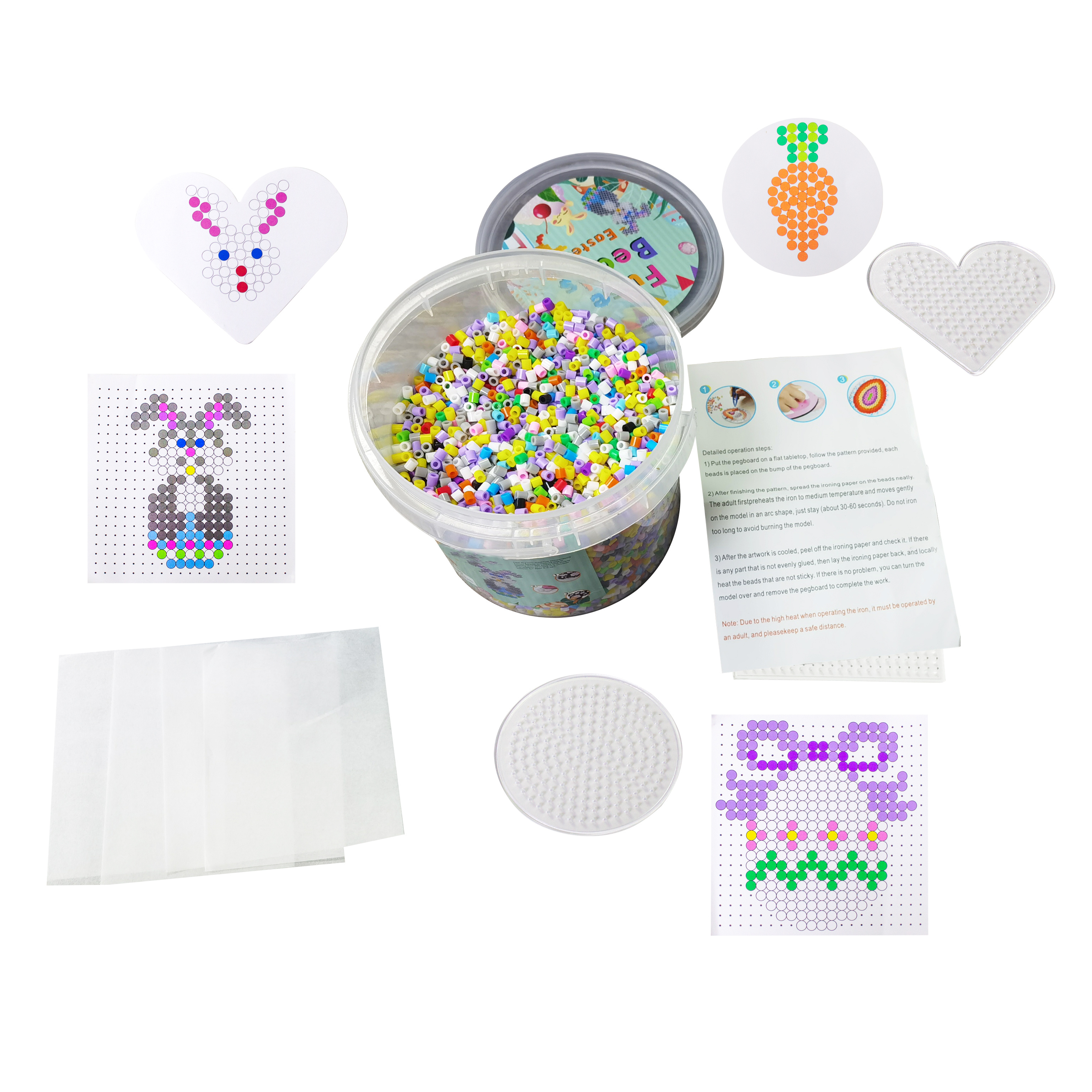 Z korálků můžete vyrobit plno různých obrázků díky jejich barevnosti. Práce s nimi je jednoduchá - stačí pouze korálky naskládat na podložku, po dokončení se mozaika z korálků zažehlí přes zažehlovací papír pomocí klasické žehličky na prádlo maximálně na střední výkon. Díky tomu se korálky roztaví a zafixují do sebe.