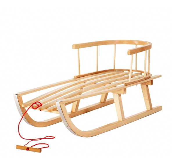 Klasické celodřevěné sáňky s odnímatelnou dětskou ohrádkou, vyrobené z kvalitního bukového dřeva, určené pro rekreační sáňkování.