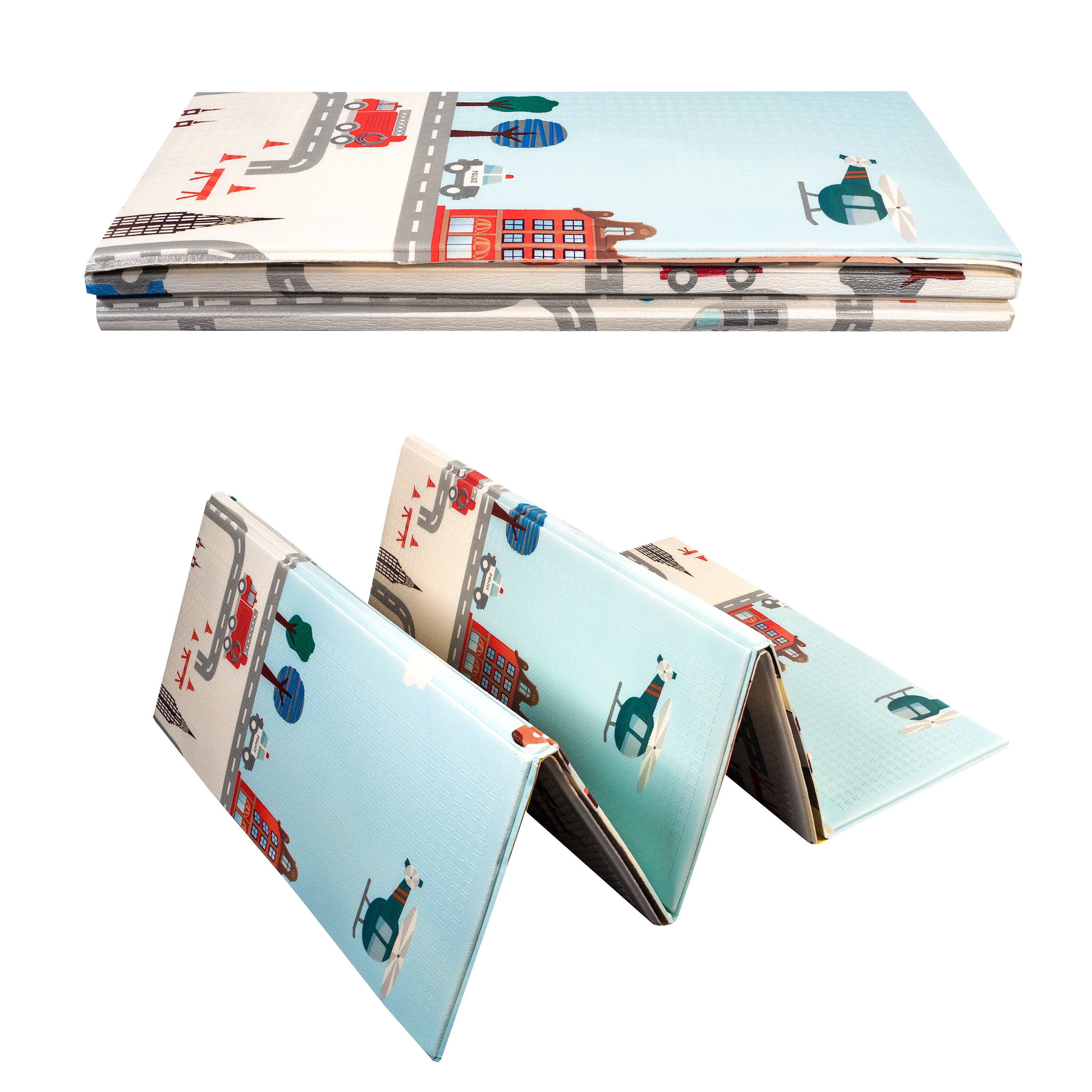 Hrací podložka se dá složit do praktické přenosné tašky, která je součástí. Podložka tak nezabere nikde zbytečně místo, dobře se skladuje a snadno přenáší.