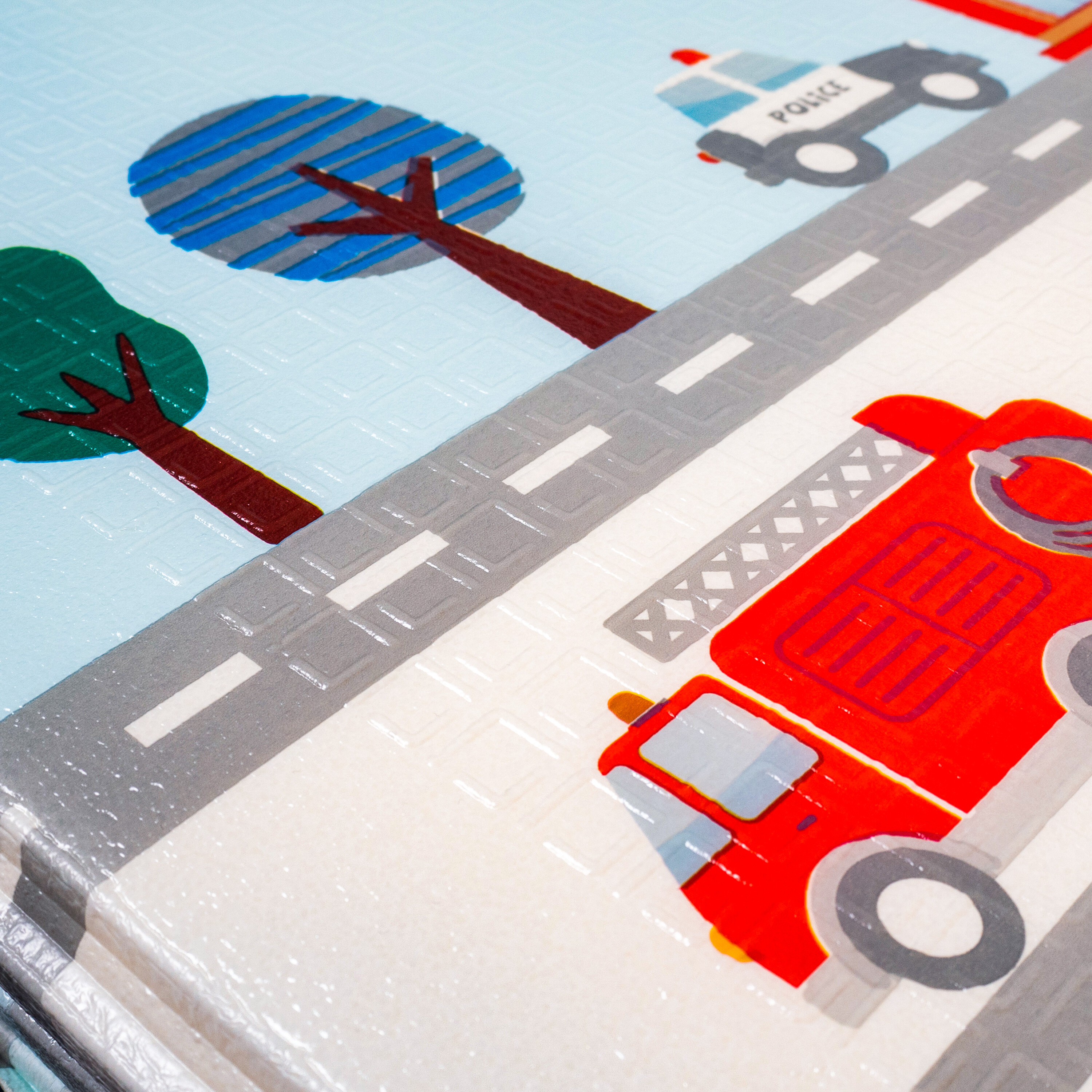 Hrací podložka má oboustranný potisk s veselými motivy a protiskluzový povrch zajistí bezpečnost každé hry.