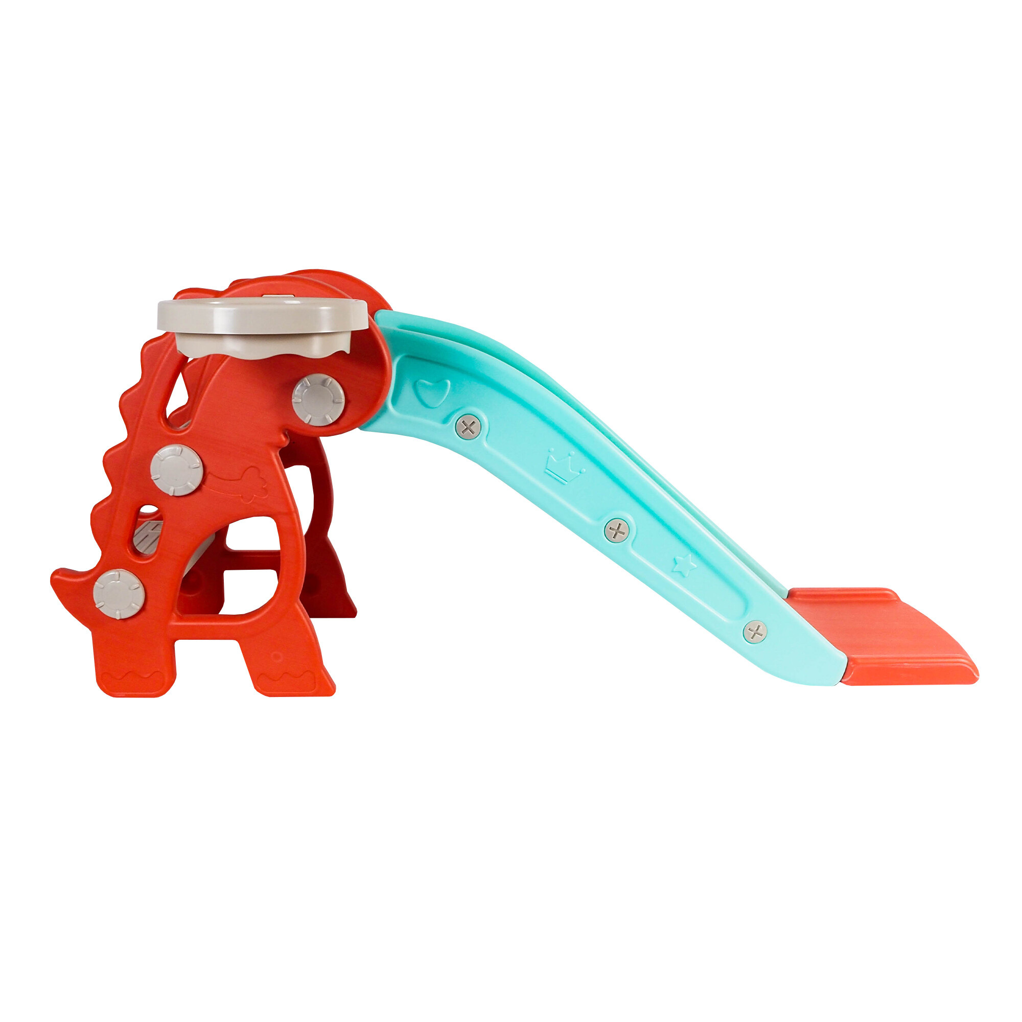 Je vybavena také basketbalovým košem a míčkem, což dětem poskytuje další možnosti zábavy a pohybu. Děti si mohou hrát na malého basketbalistu a trénovat své dovednosti při házení míčem do koše.