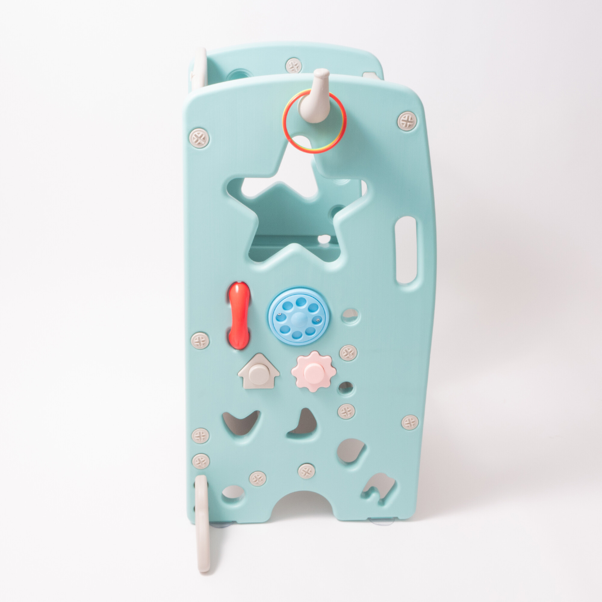 Učicí věž je vyrobena z vysoce kvalitního HDPE plastu, který je známý svou odolností a bezpečností. Tento materiál je nejen ekologický, ale také snadno udržovatelný, což zajišťuje dlouhou životnost produktu.