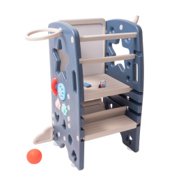 Dítě může vylézt na výukovou věž samostatně, schod od podlahy je ve výšce 12 cm, což pomáhá dítěti dostat se na věž bezpečně. Učící věž nevyužijete pouze v kuchyni, ale i při dalších činnostech jako je čištění zubů, mytí rukou, pomáhání tatínkovi v dílně nebo při podávání hraček, které jsou v horních policích.