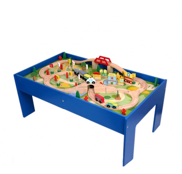 Dřevěná vláčkodráha Table Train Set 80, je velký set s hracím stolem a bohatým příslušenstvím od firmy Aga4Kids.