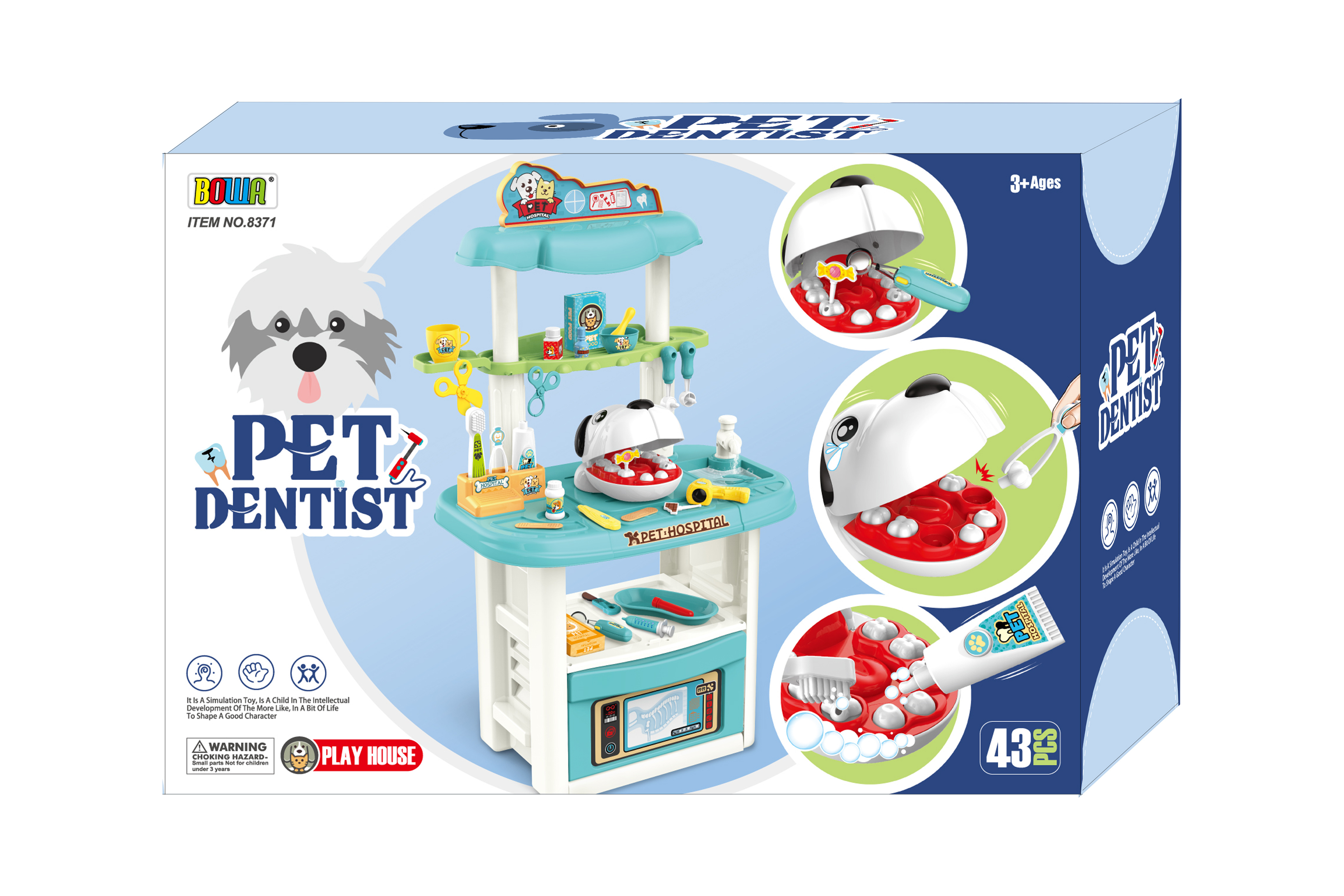 Dítě se díky sadě ocitne v roli zubaře. Je na něm, aby pečlivě zkontrolovalo celý chrup svému pacientovi, kterým je zde pejsek.