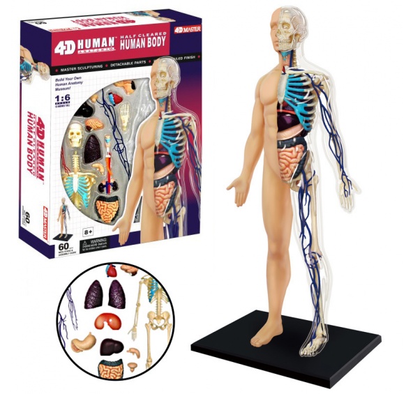 4D anatomický model těla je ideální vzdělávací pomůckou. Tělo je velmi detailně zpracována a ručně malovaná. Lidské tělo je označení pro veškerou hmotu, která tvoří člověka. Je tvořeno mnoha různými druhy buněk, které společně tvoří tkáně a následně orgánové soustavy. Ty společně zajišťují stále vnitřní prostředí a životaschopnost člověka. Snadné sestavení, stačí jen připojit k sobě. Žádné řezání ani lepení. Věrné barvy a detailní zpracování. Balení obsahuje 60 jednotlivých částí ke složení modelu s podrobným návodem a popisem.