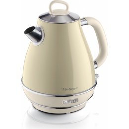 Elegantní retro konvice s povrchovou úpravou v béžové barvě Chromové detaily Potažená rukojeť - příjemné na dotek Příkon 2000 W Objem 1,7 l 360° odnímatelná základna Indikátor vodní hladiny Tepelná izolace stěn Vnitřní vyjímatelný filtr Automatickým vypnutím a bezpečnostní pojistkou Vyvážená pro snadné naplnění šálků Vnitřní materiál pro styk s vodou - nerez