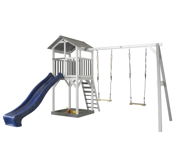 Skluzavka v délce 220 cm poskytne dětem nezapomenutelný zážitek z jízdy. Na hracím hřišti se nachází dvě houpačky.