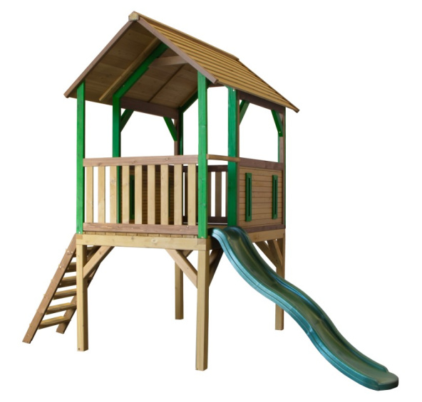 Hrací domeček je vyroben ze 100% cedrového FSC dřeva, je stabilní, bezpečný a poskytuje nekonečné možnosti pro aktivní hru.