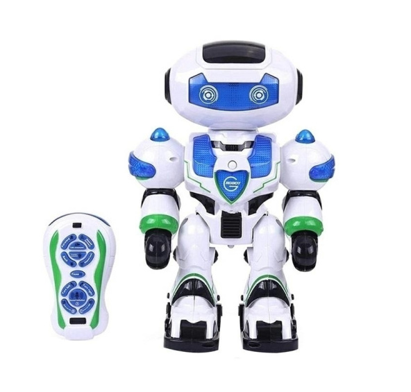 Dálkově ovládaný interaktivní robot. Robot umí komunikovat s dítětem pomocí hlasových příkazů v anglickém jazyce. Hračka má funkci nahrávání a přehrávání zvuků. Robot sám informuje dítě o vyčerpávající se baterii a nutnosti připojení k nabíječce. Robot tančí, zpívá a pohybuje se podle vydávaných hlasových příkazů nebo příkazů na dálkovém ovladači. V režimu učení klade robot dítěti jednoduché otázky, na které je odpovědí ano nebo ne. Specifikace: dálkové ovládání pomocí dálkového ovladače nebo hlasových příkazů funkce tance a zpěvu písní režim zapamatování sekvence pohybů výukový režim - robot klade dítěti jednoduché otázky a kontroluje správnost odpovědí funkce vyprávění pohádek hlasové oznámení o potřebě připojení k nabíjení automatické uspání funkce nahrávání zvuku napájení robota: vestavěný akumulátor napájení dálkového ovladače: 2xAA (není součástí balení) V balení je nabíječka. Rozměry: 21x14x31cm Hračka není vhodná pro děti mladší 3 let. Množství ks. v kartonu: 12