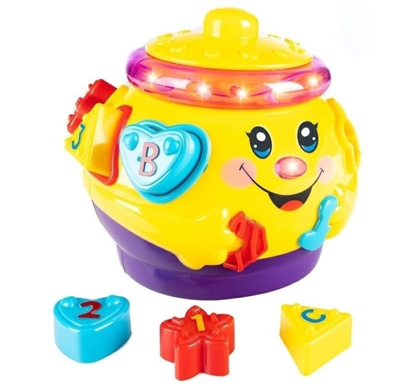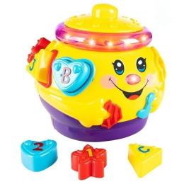 Vzdělávací hračka jezdící hrnec na baterie. Kombinace zábavy spočívající ve vkládání správných tvarů kostek do otvorů v hrnci. Hračka svítí, přehrává veselou hudbu, pohybuje se v mnoha směrech a houpe se ze strany na stranu. Vlastnosti produktu: - materiál: bezpečný plast - odnímatelné víko - napájení: 3xAA (není součástí balení) - rozměry: cca 17 cm šířka x 15 cm výška x 14 cm hloubka. V sadě: - jezdící hrnec - 1x poklička - 6x různě tvarované kostky k vkládání otvory - originální balení - návod CZ Hračka není vhodná pro děti mladší 3 let. Produkt zabalený v dodatečné kartonové krabici - připravený k odeslání. Množství ks. na paletě: 240