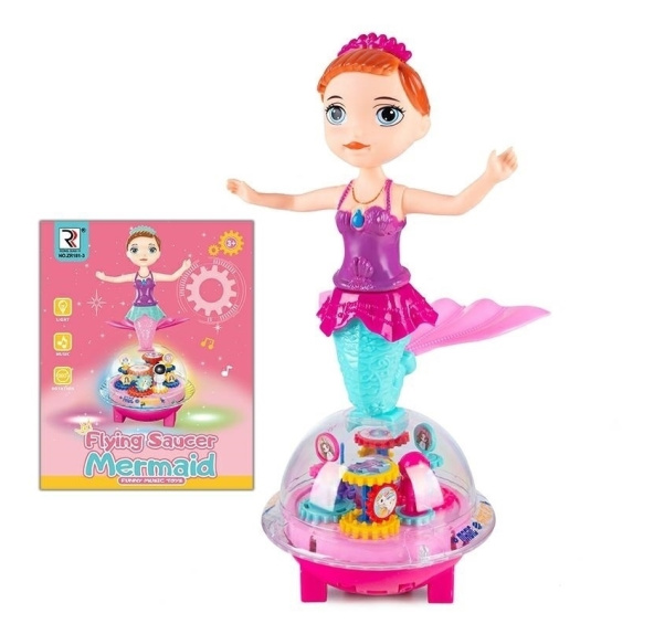 Tančící krásná mořská panna naláká každého k zábavě. Barevná blikající světelná základna dodává hračce na atraktivitě. Funkce: - jezdí - vydává zvuky (4 varianty) - pohyblivé prvky uvnitř kopule - projektor, promítající obraz na podlahu - 4 diody: červená, modrá, zelená, růžová - možnost zablokování jízdy Napájení: 3x AA (není součástí balení) Rozměry hračky: 16x16x33 cm Hračka pro děti od 3 let Produkt zabalený v dalším kartonu - připraven k odeslání. Rozměry kartonu: 20x16x16cm Produkt zabalený v dalším kartonu.