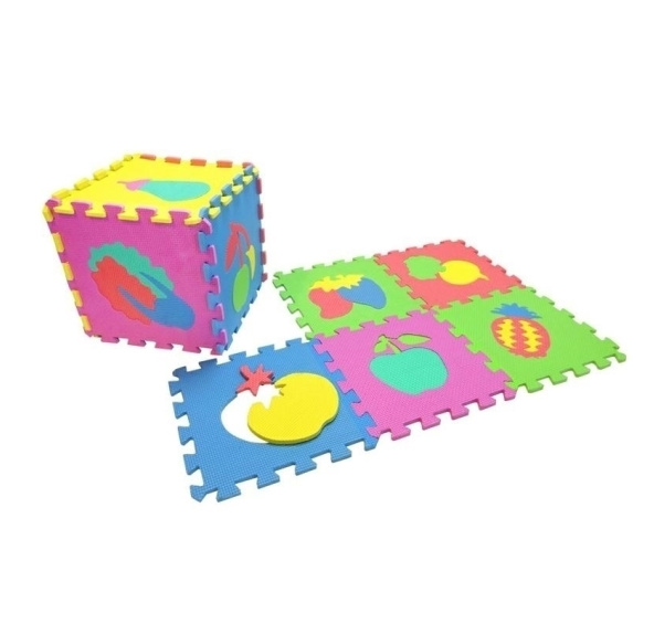 Mata puzzle pěnové ovoce a zelenina 10ks. Puzzle mohou plnit různé funkce: jako podložka na hraní a odpočinek, forma učení, dítě se seznamuje s ovocem a zeleninou a také stimulují smysl zraku, hmatu a manuální a pohybové dovednosti. Každé z čtvercových puzzlí má v sobě vyjímatelné ovoce nebo zeleninu. Specifikace: velikost puzzle 29x29cm počet puzzlí v sadě: 10ks tloušťka: 0,8cm hmotnost 360g Hračka není vhodná pro děti do 3 let. Množství ks. v kartonu: 12 Počet ks. na paletě: 240