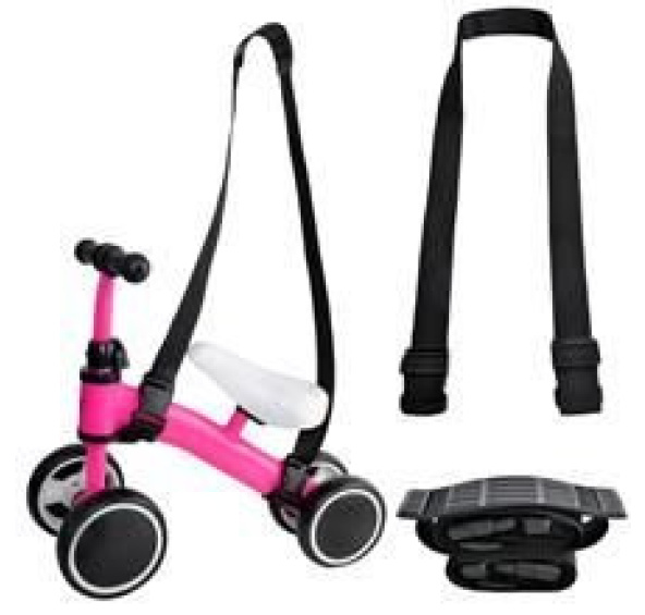 Univerzální transportní popruh pro nošení odrážedla, koloběžky nebo jiných potřeb je mimořádně funkční pomůcka, zejména pro rodiče.
