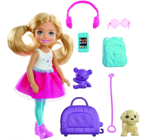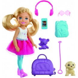 Panenka Chelsea™ a její štěňátko se již nemohou dočkat, až společně vyrazíte na cestu kolem světa za novými zážitky! V tomto herním setu Chelsea™ Cestovatelka na tebe čeká více než 5 parádních doplňků, se kterými bude cestování ještě větší zábava! Panenka Chelsea™ si na cestu připravila tašku na kolečkách, která jí díky speciálnímu klipu přesně padne do ruky, batoh a celou řadu cestovních doplňků a nezbytností, mezi kterými najdeš sluchátka, mobil a nesmí chybět ani plyšový medvídek! Chelsea™ se na cestu oblékla do růžové třpytivé sukýnky, růžových botek a svůj outfit doladila růžovými slunečními brýlemi. Podívej se, jak je její štěňátko nadšené! Na tuhle cestu určitě jen tak nezapomenete!