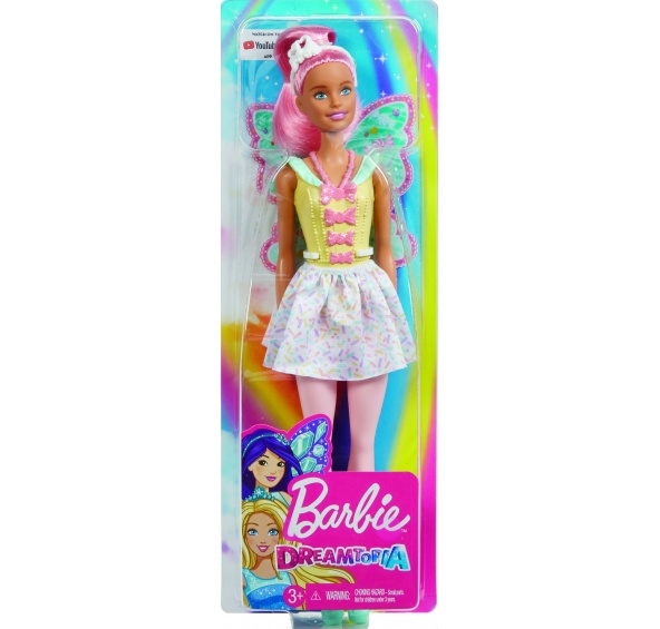 Poznej rozkošnou kouzelnou vílu pocházející ze Sladkého království v Dreamtopii. Tato Barbie® víla se pyšní překrásnými křídly, která jsou pokryta unikátními pestrobarevnými potisky a je oblečena do nádherného oblečku v zářivých barvách. Součástí oblečku je odnímatelná sukýnka, ladící střevíčky a samozřejmě nesmí chybět ani překrásná korunka, která je už jen třešničkou na dortu! Připrav se na magické dobrodružství, protože jakmile vstoupíš do Dreamtopie, probudíš se ve světě, kde se sny stávají skutečností!