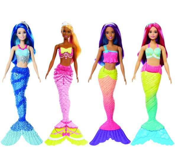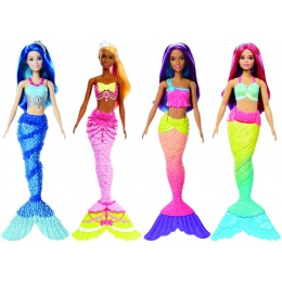 Nech své představivosti volný průběh a ponoř se do skvělé zábavy s těmito mořskými pannami Barbie®, protože když vstoupíš spolu se sestrami Barbie® a Chelsea™ do světa Dreamtopia, probudíš se ve světě, ve kterém se sny stávají skutečností! Vyber si jednu z několika úžasných mořských pan pocházejících z různých království. Každá mořská panna je přibližně 30 centimetrů vysoká a je oblečená do pestrobarevného oblečku se zdobeným živůtkem. Celý vzhled podtrhuje její ploutev, která odráží království, z kterého mořská panna pochází a jedinečná čelenka.