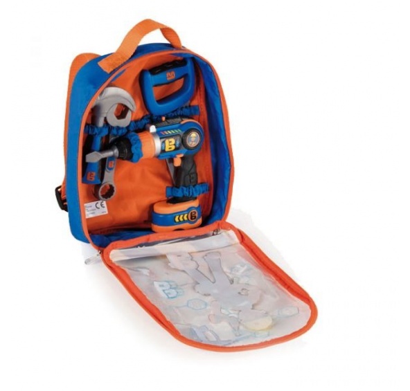 Balení obasahuje aku šroubovák s mechanickou funkcí, pilka, kladívko a klíč v licenci Bořek stavitel. Vše je v praktickém batohu. Rozměry 20×28×8 cm. Hmotnost 0,375 kg.