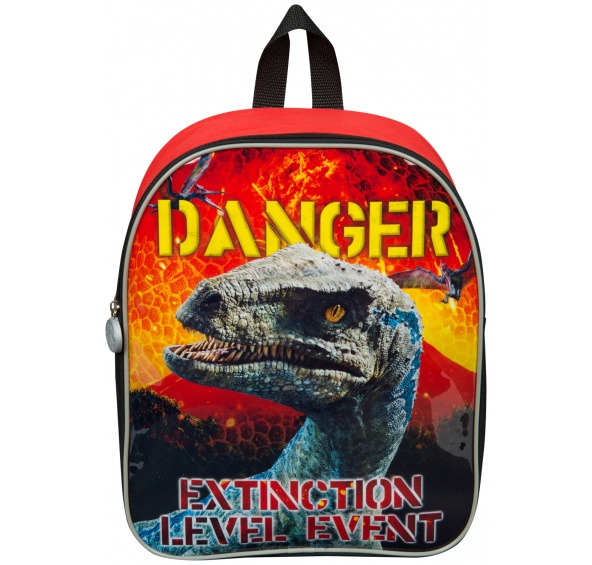 Dětský baťůžek Jurský svět. Batoh má praktické ucho na nošení v ruce a nastavitelné a polstrované popruhy a je na zip. Rozměr baťůžku 32×26×10 cm.