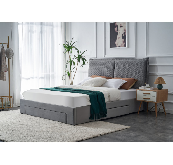 Popis produktu BECKY łóżko 160, jasny popielatyłóżko z pojemnikiem na pościel, materiał: tkanina - velvet / drewno lite, kolor: jasny popiel, * łóżko bez materaca, w opcji materac POLARIS 160 lub SYRIUSZ 160