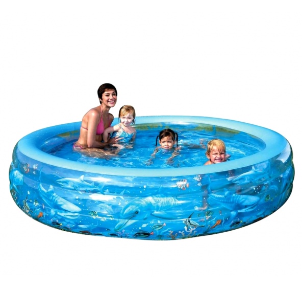 Nadzemní dětský zahradní bazén Delfín, od italské firmy Bestway s potiskem mořského světa.