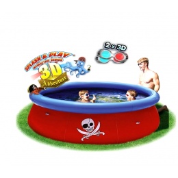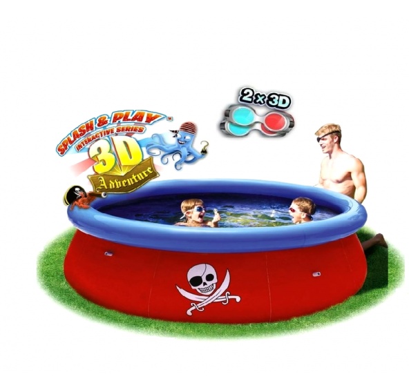 Nadzemní dětský zahradní bazén od italské firmy Bestway s 3D efektem. Součástí bazénu jsou i 3D brýle, které dětem při koupání umožní objevovat krásy pirátské tématiky v 3D provedení.