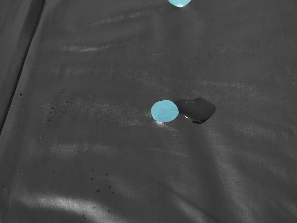 Nasazení krycí plachty na bazén je velmi jednoduché, stačí plachtu přetáhnout přes okraj bazénu a utáhnout provázky.