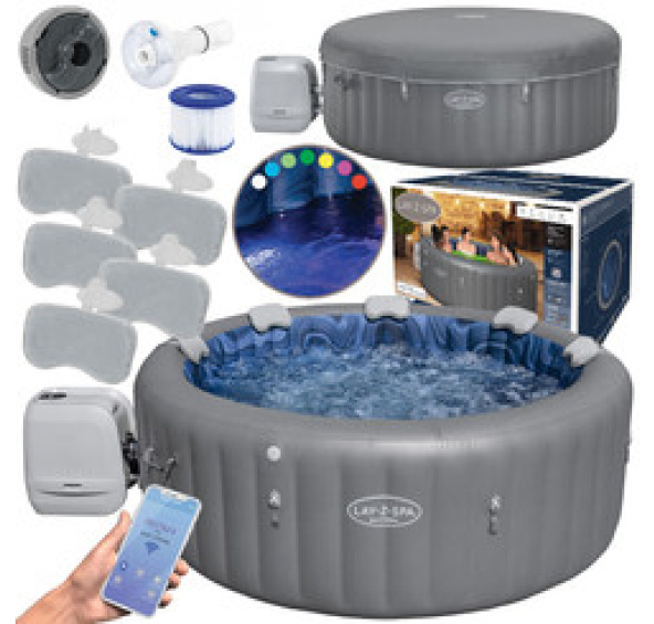 Lay-Z-Spa Santorini Smart HydroJet Pro 7 od renomované značky Bestway je nejnovější nabídka pro tuto sezónu. Model Santorini je ideální volbou, pokud hledáte cenově dostupné, přenosné spa pro maximálně 7 osob. Nafukovací jacuzzi je ideálním řešením pro osoby, které si cení luxusního odpočinku s zachováním soukromí.