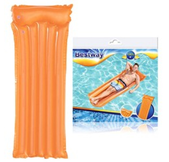 Oranžová nafukovací matrace je fantastickou volbou pro milovníky venkovní relaxace. Jednoduché, barevné nafukovací lehátko do vody je nezbytnou součástí výbavy pro výlet k vodě nebo relaxaci v bazénu. Nabízený model unese na své ploše až 90 kg vážící osobu, takže se bude hodit pro děti i dospělé. Plavecká matrace o rozměrech 183 cm x 76 cm s nafukovací opěrkou hlavy je vyrobena z měkkého, ale odolného PVC. Tento výrobek ve svěžích letních barvách se bude velmi dobře vyjímat na každé pláži.