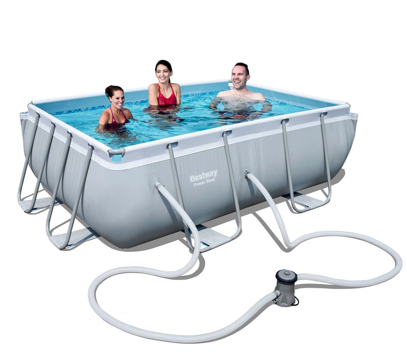 - Stačí pouze sestavit kovovou konstrukci a bazén napustit vodou