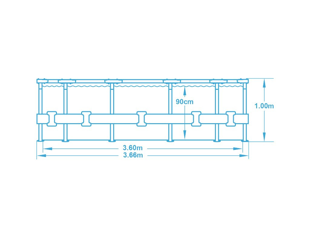 Specifikace bazénu Bestway 56418 Steel Pro Set 366 x 100 cm s kartušovou filtrací a schůdkami.