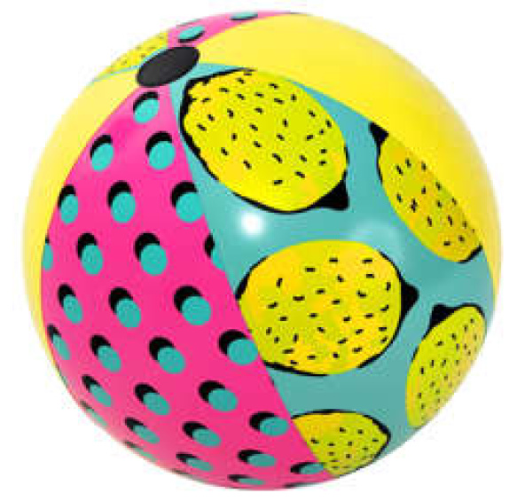 Velký nafukovací plážový míč o průměru 122 cm jistě zaujme každého, kdo má rád aktivní dovolenou. Míč se bude hodit při hře u vody, na pláži, na zahradě nebo v bazénu. Míč je vyroben z odolného vinylu v zajímavé barevné retro grafice a jistě upoutá pozornost ostatních návštěvníků pláže. Míč je určen pro hru ve vodě i na souši.