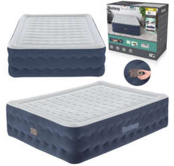 Komfortní a pohodlná nafukovací matrace Tritech Air Mattress King pro dvě osoby od společnosti Bestway je nafukovací postel určená pro vnitřní použití, takže je skvělou alternativou náhradní matrace a snadno se na ni vejdou dvě dospělé osoby. Vnitřní konstrukce matrace je vyrobena z materiálu Tritech™, který zajišťuje odolnost a pevnost a zároveň umožňuje matraci zachovat si stejný tvar bez ohledu na to, kolikrát se nafoukne a vyfoukne. Materiál ULTRA FRESH, kterým je potažena vnější strana matrace, má antibakteriální účinek a chrání před vznikem bakterií způsobujících zápach nebo plísní na povrchu matrace. Vnitřní konstrukce matrace Wave Beam zajišťuje stabilitu díky rovnoběžným nosníkům ve tvaru vlny.velkou výhodou matrace je vestavěná pumpa, díky které se matrace sama nafoukne.nafukovačka má také funkci pro odčerpání vzduchu z matrace. Matraci lze také nafouknout běžnou pumpou (v případě, že nemáte přístup k elektřině). Horní část matrace je potažena měkkým flokovaným materiálem.