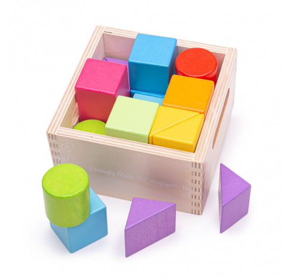 Klasický úvod do světa tvarů a barev. Krásná krabička plná barevných kostek různých tvarů. Na stranách krabičky jsou otvory, aby se vám lehce přenášela. Pomůže s rozvojem zručnosti a koordinace ruka-oko, také s prostorovou představivostí. Vyrobeno z kvalitních materiálů ze zodpovědných zdrojů. Splňuje evropské bezpečnostní standardy. Skládá se ze 17 dílků.Hlavní vlastnosti: obsahuje 17 kspomáhá rozvíjet obratnost, schopnosti shody a soustředěnívyhovuje současným evropským bezpečnostním normám
