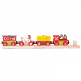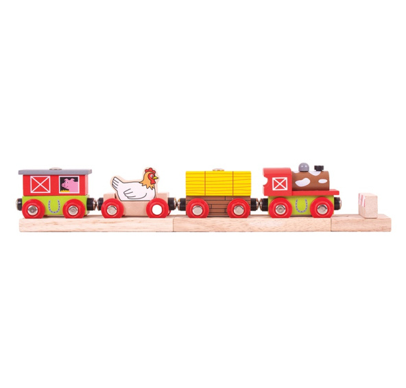 Poškozený obal. Nové zboží bez závad. Součásti balení jsou také koleje: 2ks střední kolej BJT101 a 1ks koncová kolej BJT161!Děti budou milovat tento jasný a veselý set vlaku farma, který zahrnuje tři vagónky, kolejnice a chytrou lokomotivu. Magnetická spojka vagónků také znamená, že mohou být snadno propojeny s dalšími kusy. Hlavní vlastnosti: Vláčkodráhy a jejich příslušenství značky Bigjigs Rail je možno kombinovat se všemi dalšími dřevěnými vláčkodráhami na trhu.Vyrobeno z kvalitních a zodpovědně získaných přírodních materiálů.Odpovídá současným evropským bezpečnostním normám.Podporuje představivost, obratnost a koordinaci.