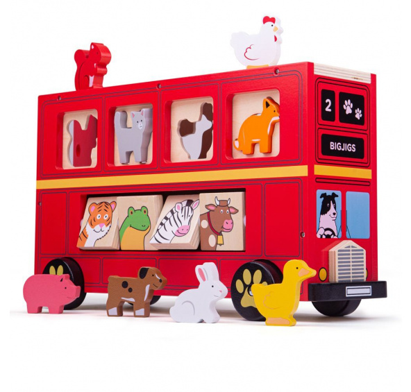Popis produktu Bigjigs Toys Dřevěný autobus se zvířátky poškozený obal