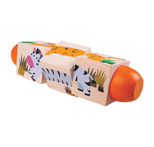Tvořivé děti budou rády otáčet a kombinovat kostky tak, aby sestavily obrázková zvířata. Spojte ty stejné, nebo obrázky promíchejte a vytvořte nové bláznivé auto. S více než 60 kombinacemi zábava nikdy nekončí. Skvělá a jednoduchá hračka. K dispozici ve dvou dalších motivech: život v moři a doprava. Vyrobeno z vysoce kvalitních materiálů ze zodpovědných zdrojů. Vyhovuje současným evropským bezpečnostním normám. Hlavní vlastnosti: rozvíjí motorické dovednosti, rozpoznávání tvarů a barevkompaktní a odolné provedení