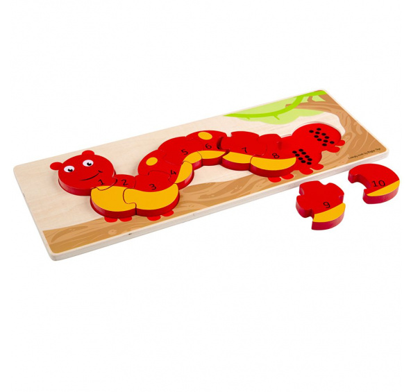 Tato barevná housenka čeká, až vaše ratolesti poskládají čísla jedna až deset! Za každým z očíslovaných dílků jsou černé tečky, které odpovídají číslu na dřevěném dílku puzzle, malí musí k dokončení puzzle přiřadit číslo k počtu teček na základní desce. Toto masivní dřevěné puzzle obsahuje 10 dílků, které mají velikost, aby je malé ručičky snáze zvedaly, uchopovaly, zkoumaly a vyměňovaly. Pomáhá rozvíjet zručnost, přizpůsobování, koncentraci a počítání. Dřevěné puzzle Bigjigs Toys pomáhají rozvíjet slovní zásobu a pomáhají dětem vybavit si slova, když rozpoznávají tvary, barvy a obrázky. Dřevěné základní desky puzzle Bigjigs Toys jsou potištěny obrázky nebo barvami, které napomáhají procesu učení a zvyšují vzdělávací hodnotu. Vyrobeno z vysoce kvalitních, zodpovědně získaných materiálů. Splňuje aktuální evropské bezpečnostní normy. Hlavní vlastnosti: obsahuje 10 dílků puzzlevelká velikost a jedinečný tvar každého dílkupomáhá rozpoznávat barvy a čísla
