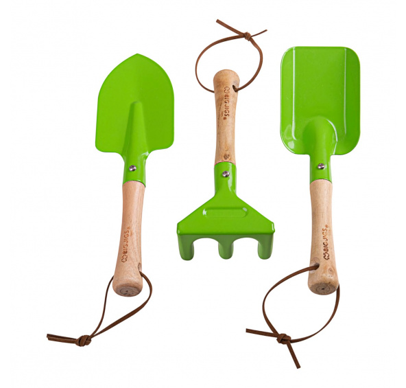 Zábavný a bezpečný set nářadí na zahradu, který byl designován pro malé dětské ruce. V balení najdete ruční hrábě, rýč a lopatku – děti mohou pomáhat na zahradě! Nářadí má pevnou dřevěnou rukojeť, vydrží vám tak mnoho let. Mladí zahradníci je mohou použít při přesazování květin, sazbě ovoce, zeleniny nebo rostlin. V naší nabídce najdete další zahradnické vybavení značky BigJigs Toys. Vyrobeno z kvalitních materiálů ze zodpovědných zdrojů. Odpovídá evropským bezpečnostním standardům. Hlavní vlastnosti: ideální velikost pro děti rozvíjí motoriku a vztah k přírodě vyrobeno z kovu, dřevěná násada
