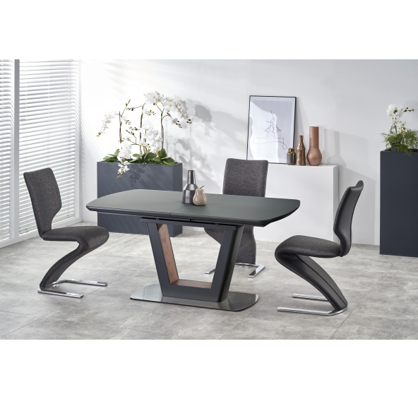 Popis produktu BILOTTI stół rozkładany antracytowy mat / orzech (3p=1szt)wymiary: 160÷200/90/76 cm, stół rozkładany, materiał: szkło / MDF lakierowany / MDF laminowany / stal nierdzewna, kolor: antracyt mat - orzech