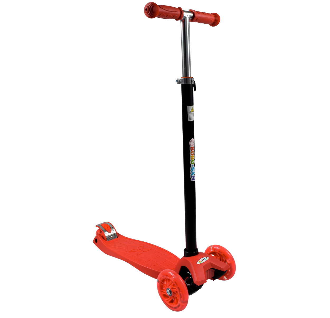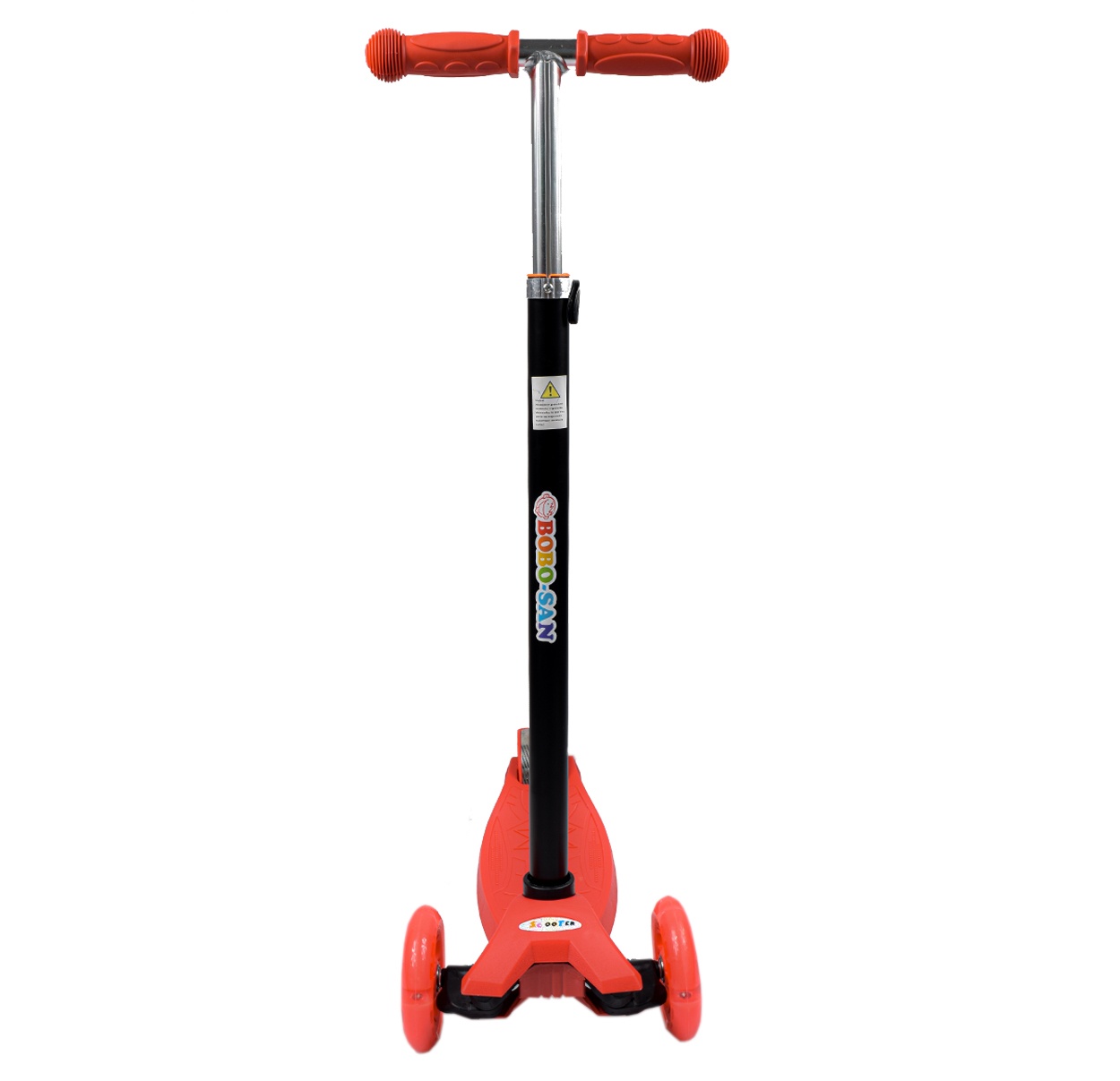 Koloběžka je opatřena několika bezpečnostními a ochrannými prvky jako jsou např. prostorná nášlapná deska s neklouzavou úpravou, protiskluzové rukojeti řídítek. Zadní 7,5 cm kolečko je opatřeno nášlapnou brzdou pro lehké a intuitivní brzděn.
