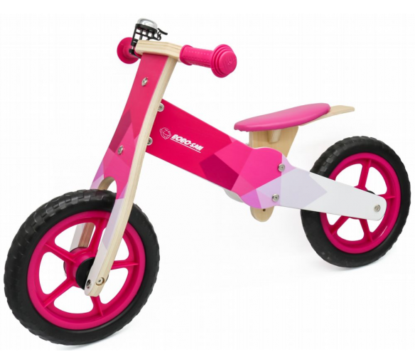 Dětské dřevěné odrážedlo, se zatáčecími řídítky, ergonomicky tvarovaným a výškově nastavitelným sedátkem.