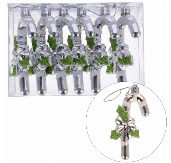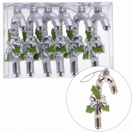 Stříbrné vánoční ozdoby ve tvaru vánočních holí