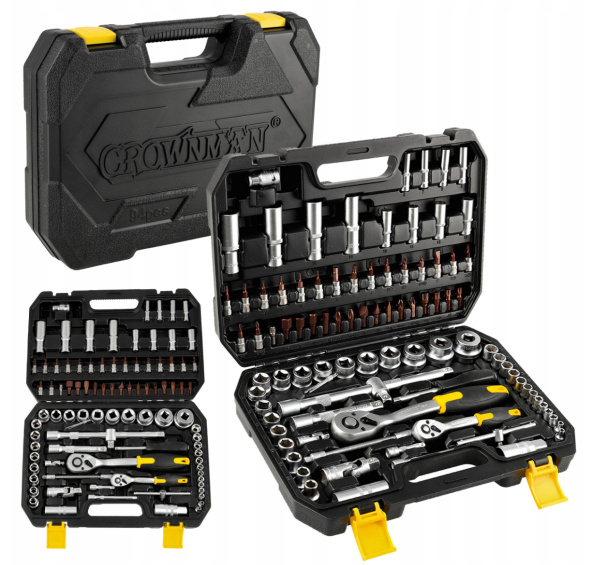 94dílná sada nářadí CROWNMAN je kompletní sada nástrčných klíčů, klíčů a bitů, které jsou nezbytné v dílně i doma.