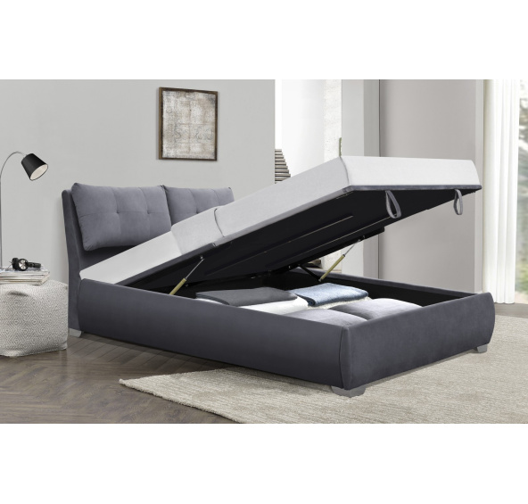 Popis produktu BRIDGET 160 łóżko z pojemnikiem popielaty (3p=1szt)łóżko z pojemnikiem na pościel, materiał: tkanina / stal chromowana, kolor: popielaty, * łóżko bez materaca, w opcji materac POLARIS 160