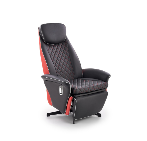 Popis produktu CAMARO fotel wypoczynkowy czarny / czerwony (1p=1szt)wymiary: 77/72-146/112-86/45 cm, fotel rozkładany, materiał: eco skóra / stal malowana proszkowo, kolor: czarny - czerwony